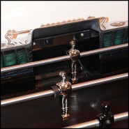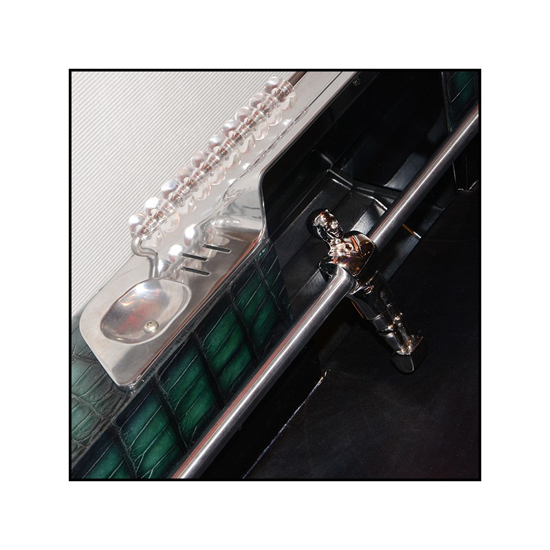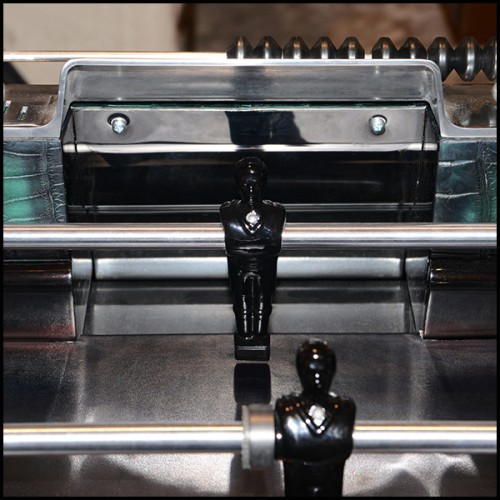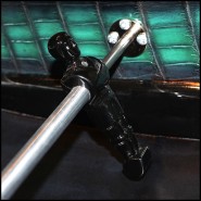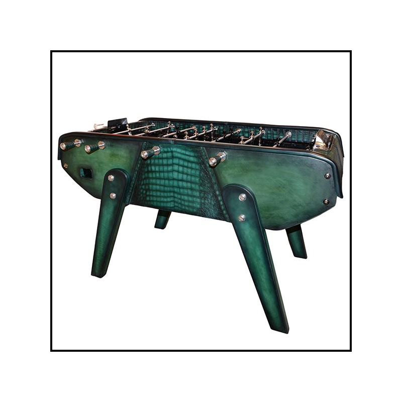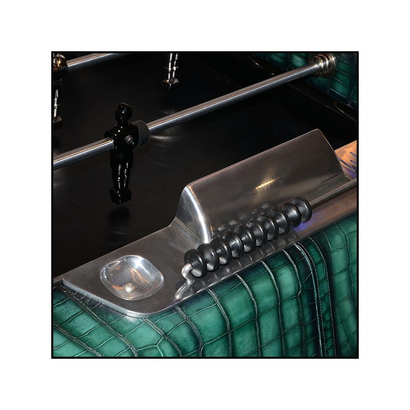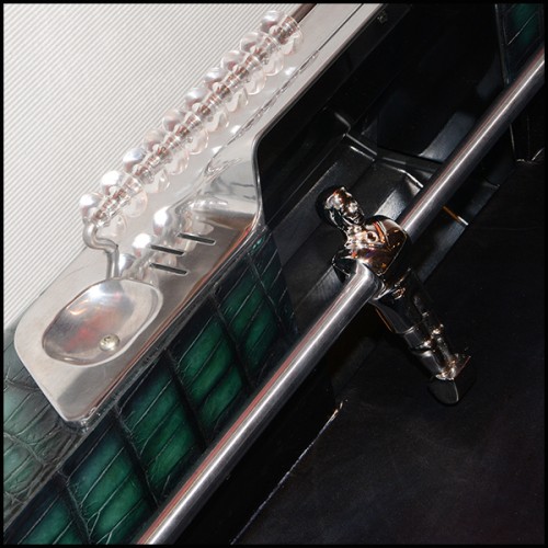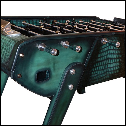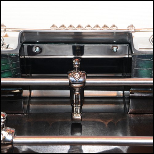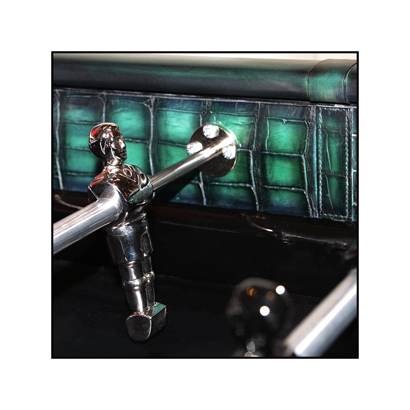 upholstered and covered in real alligator skin in dark green color and with high quality genuine dark green leather with gradient.