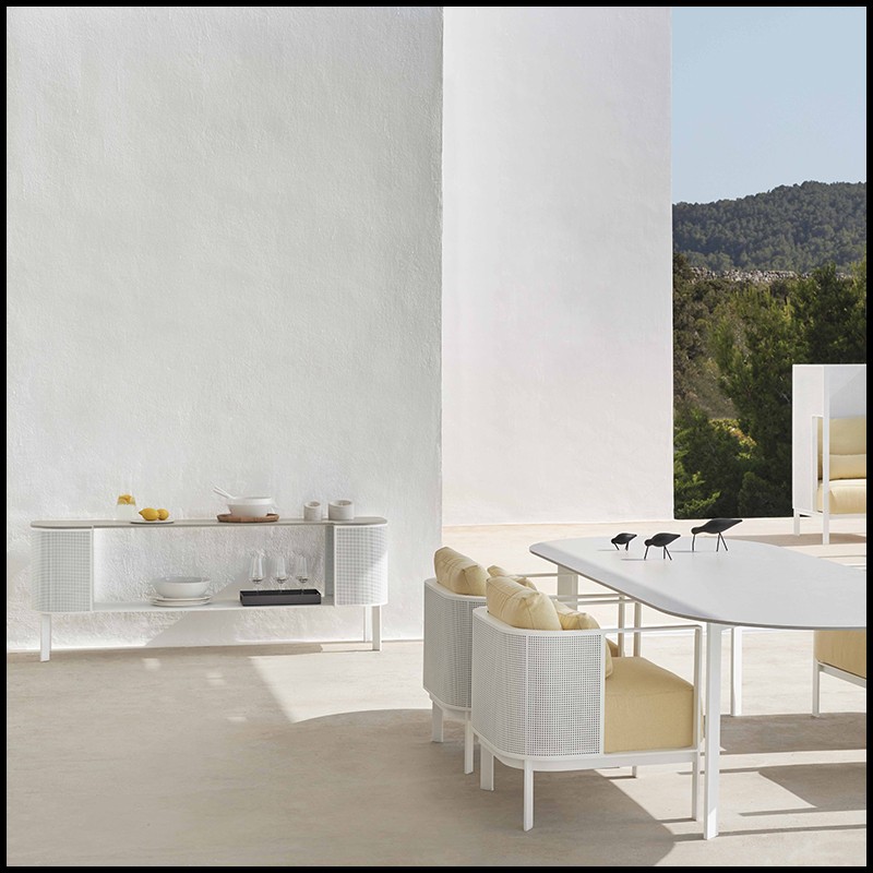 details in micro-perforated sheet metal, and a weather-resistant Dekton top.