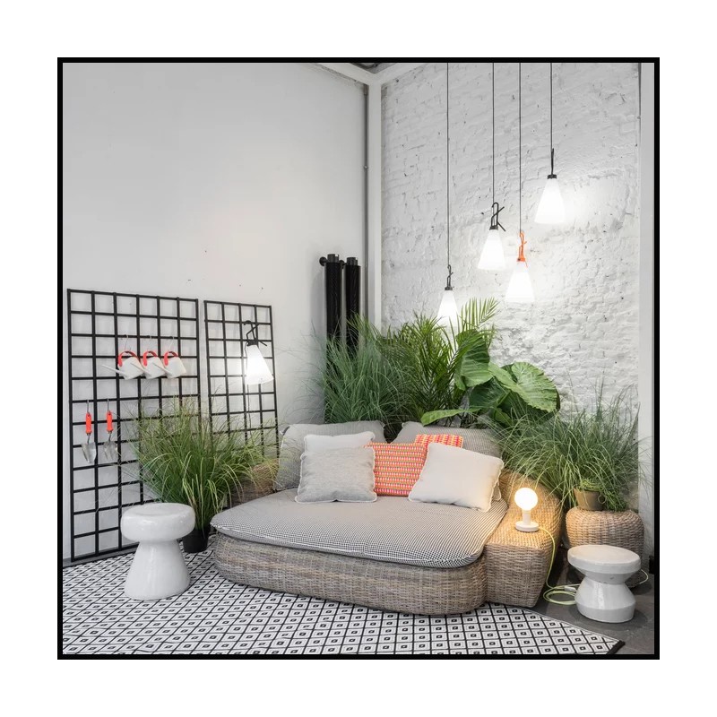 model, designed with hand-woven Resin fiber in white/gray, and a