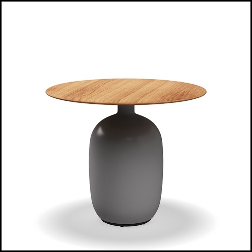 Lamp Cocoon with a shade in polyethylene and handle in natural finish teak.