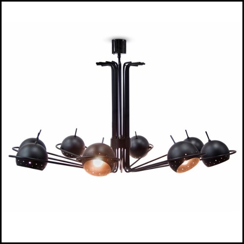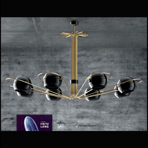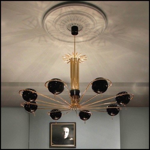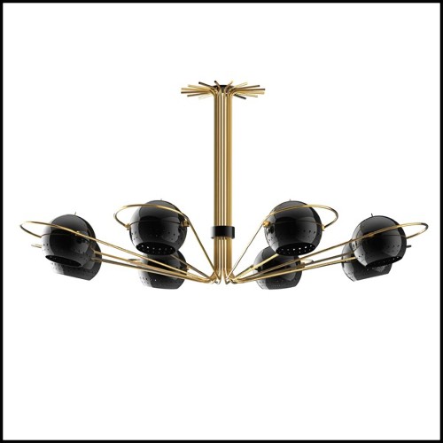 Chandelier black ball lights with polished brass round arcs and steel PC-Black Ball Lights