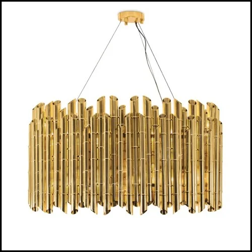 Suspension in handcrafted glossy brass with multi bamboo's tubes 155-Bamboo