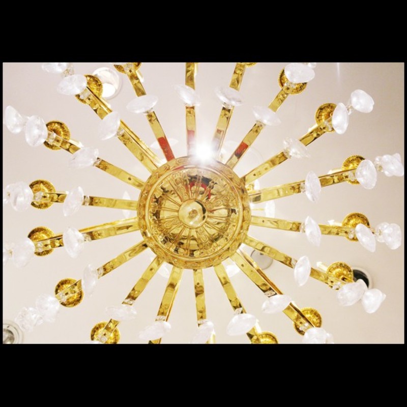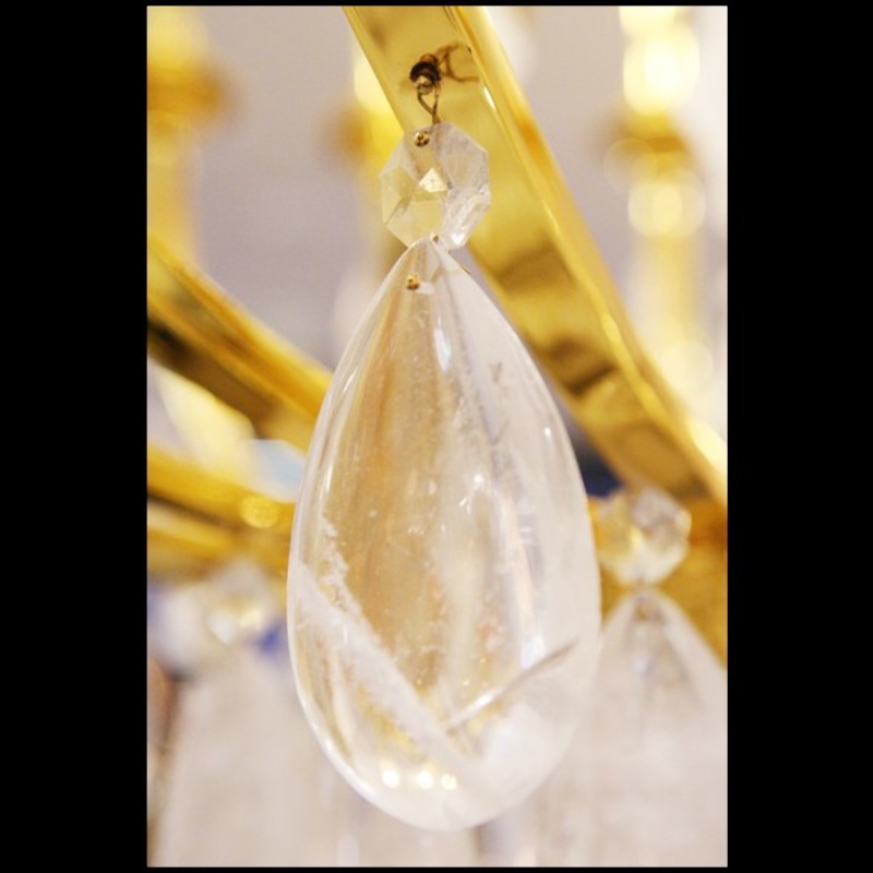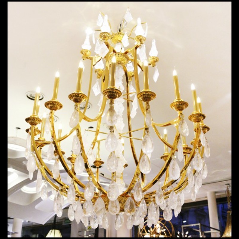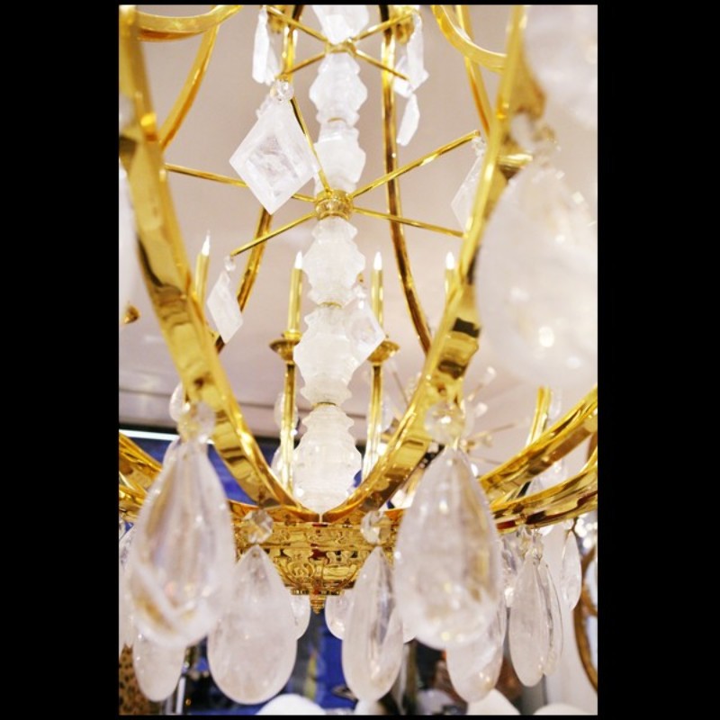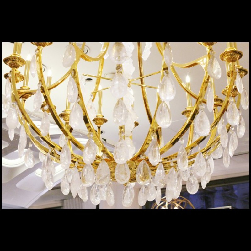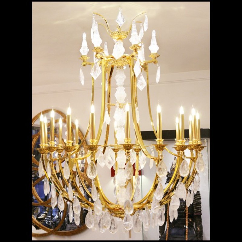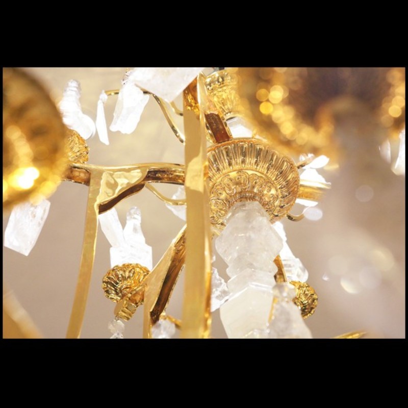Chandelier Gold and Crystal Rock, with structure in solid bronze and gold-plated,