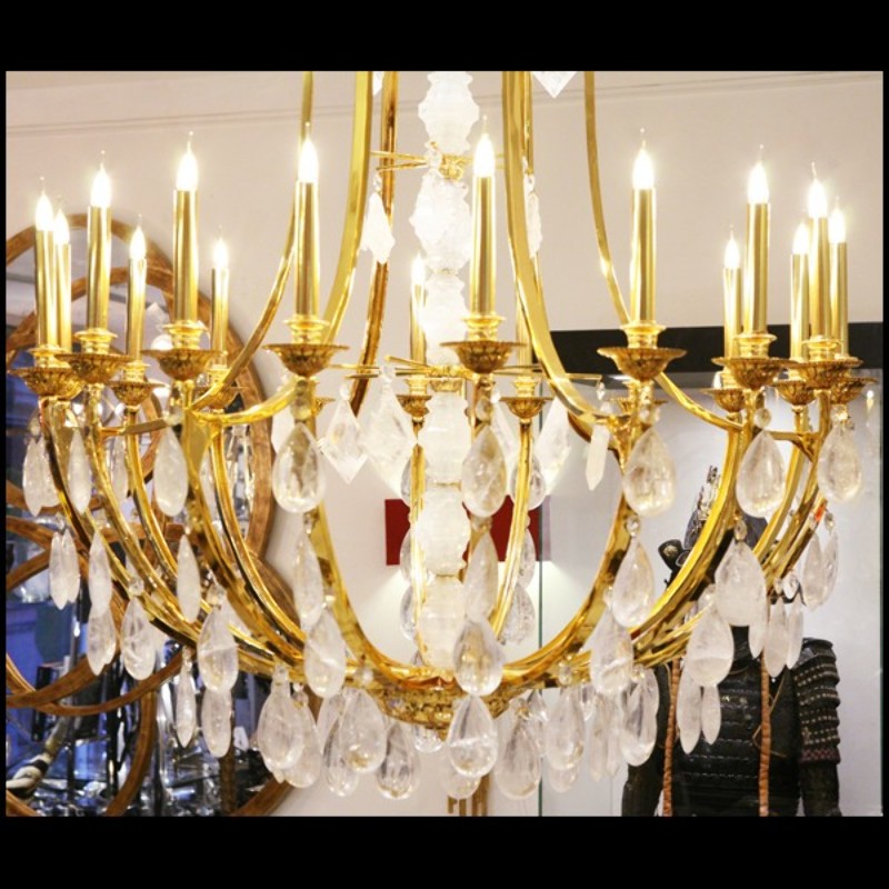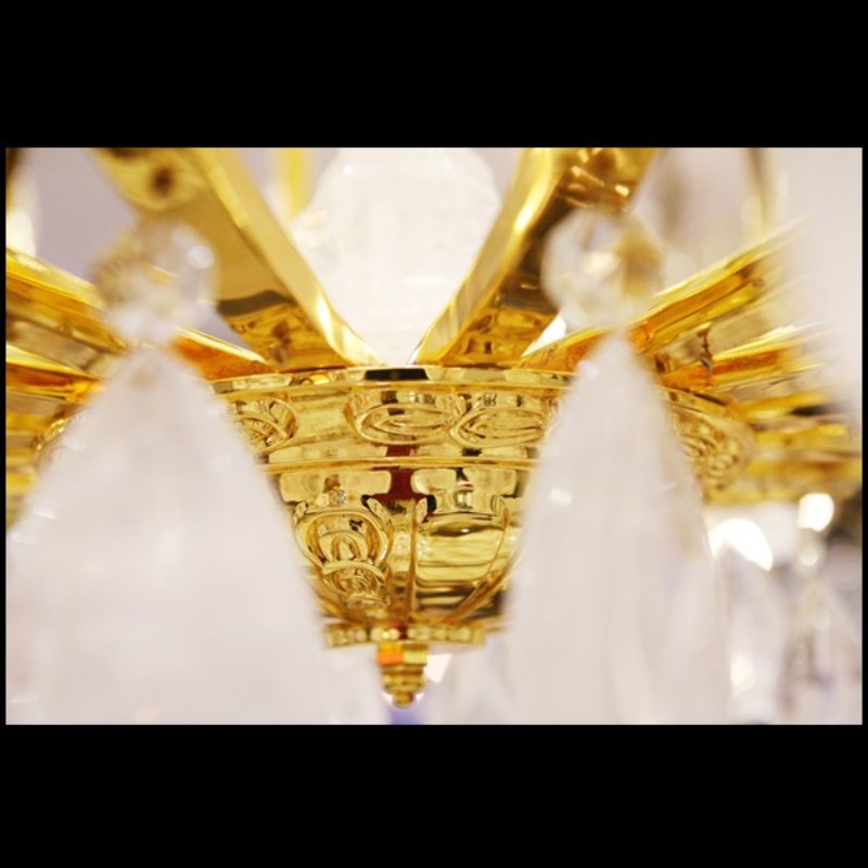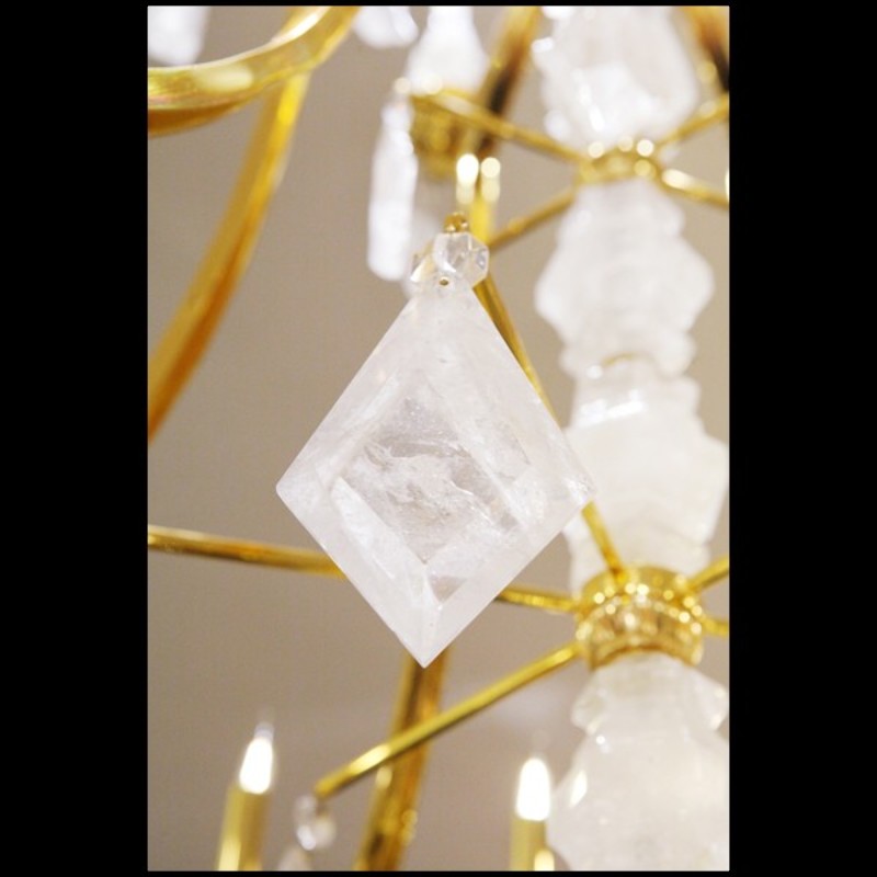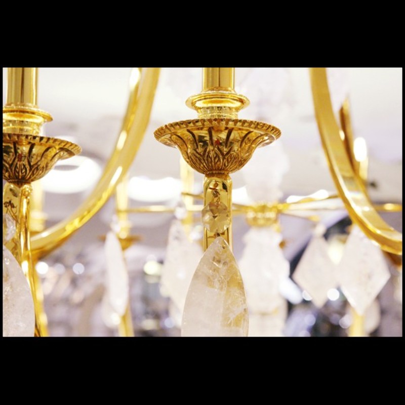 Chandelier with structure in solid bronze and gold-plated PC-Gold and Crystal Rock