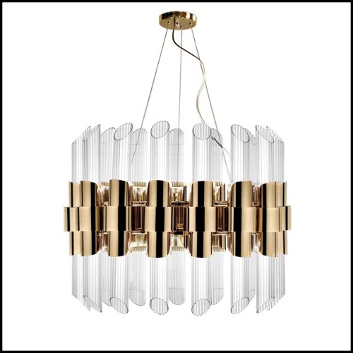 Suspension Vitta Gold Round with ribbed crystal glass cylinders gathered