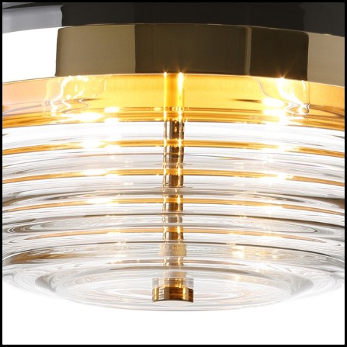 Suspension with structure and base in polished solid brass and black glass shade 165-Duke