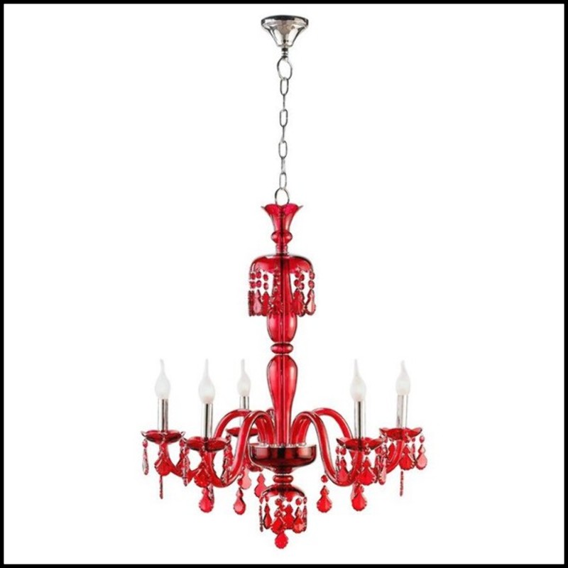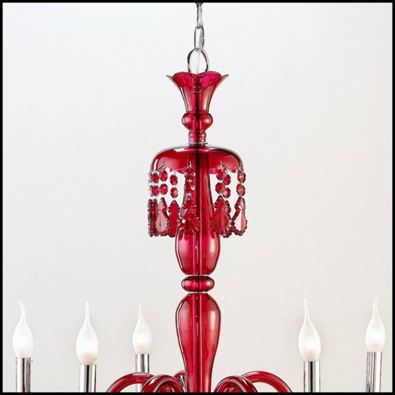 Chandelier with brass structure in nickel finish and with handblown red glass body 165-Tamara Red