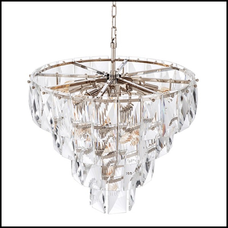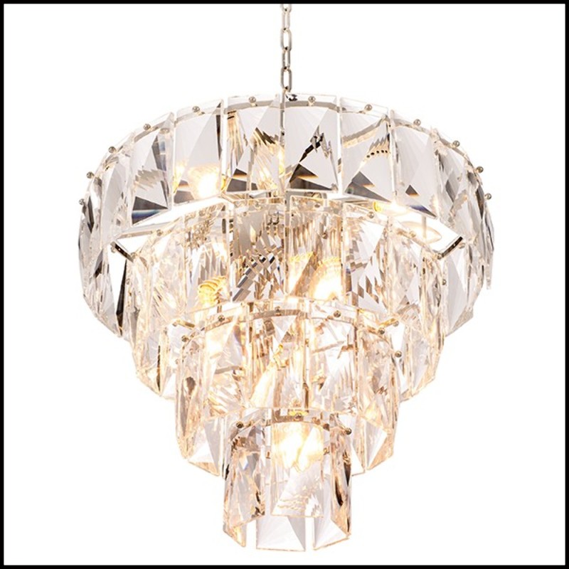 clear crystal glass panels, creating a multi-tiered luminous effect.