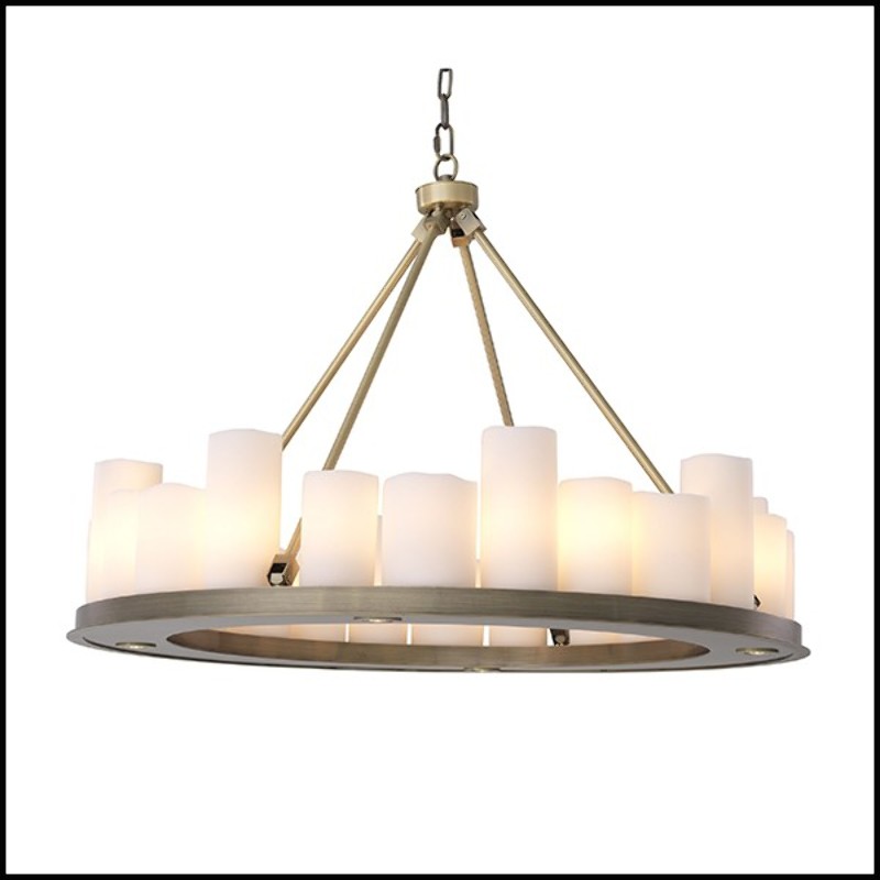 Chandelier Round Commodore round shaped in light brushed brass finish,