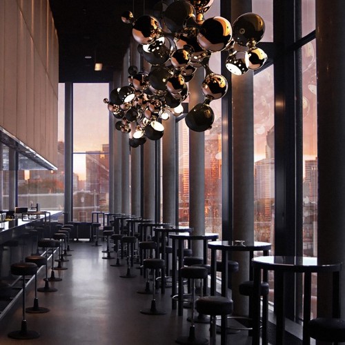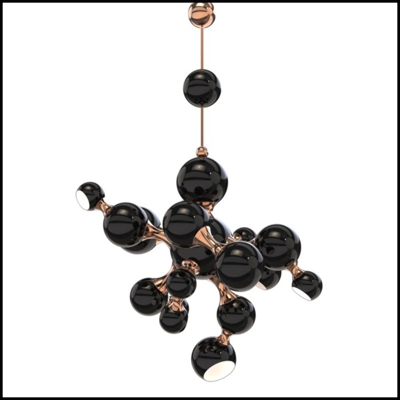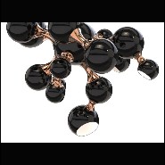 Chandelier with aluminum and brass structure with glossy black globes and plated gold 151-Black Pearl