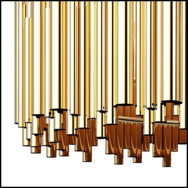 Chandelier made of gold-plated brass and handmade tubes 151-Brubeck Oval