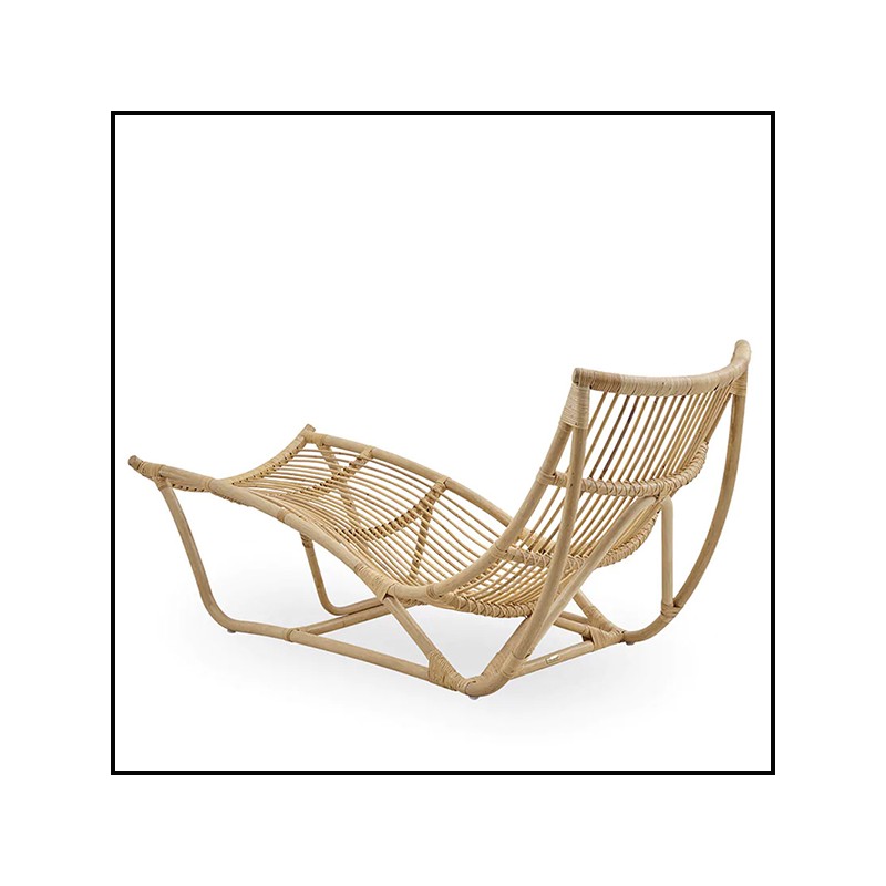 Chaise Longue Sleeper Natural all in brown natural rattan with rocking feet.