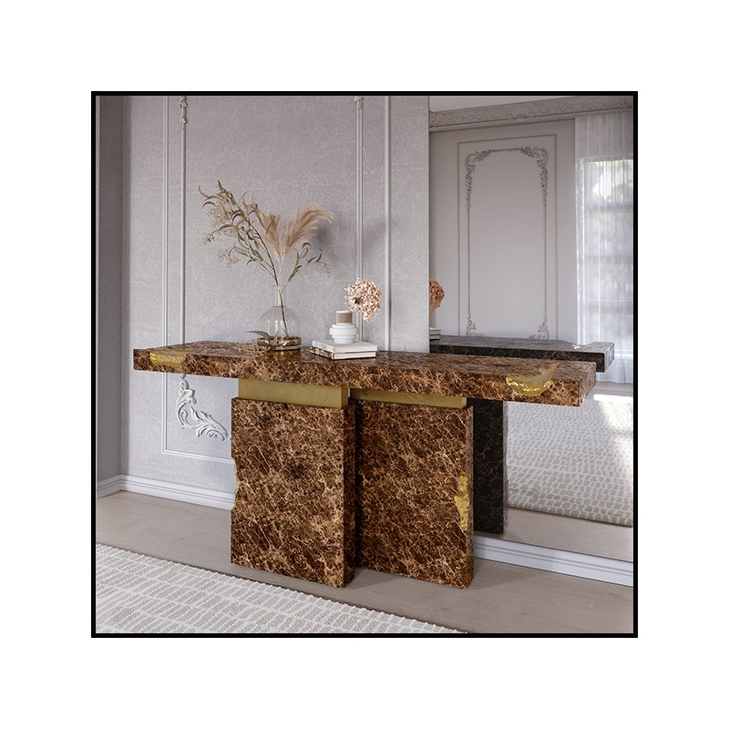 Console table Majestic Brown feature emperador brown marquina marble, carved and polished.