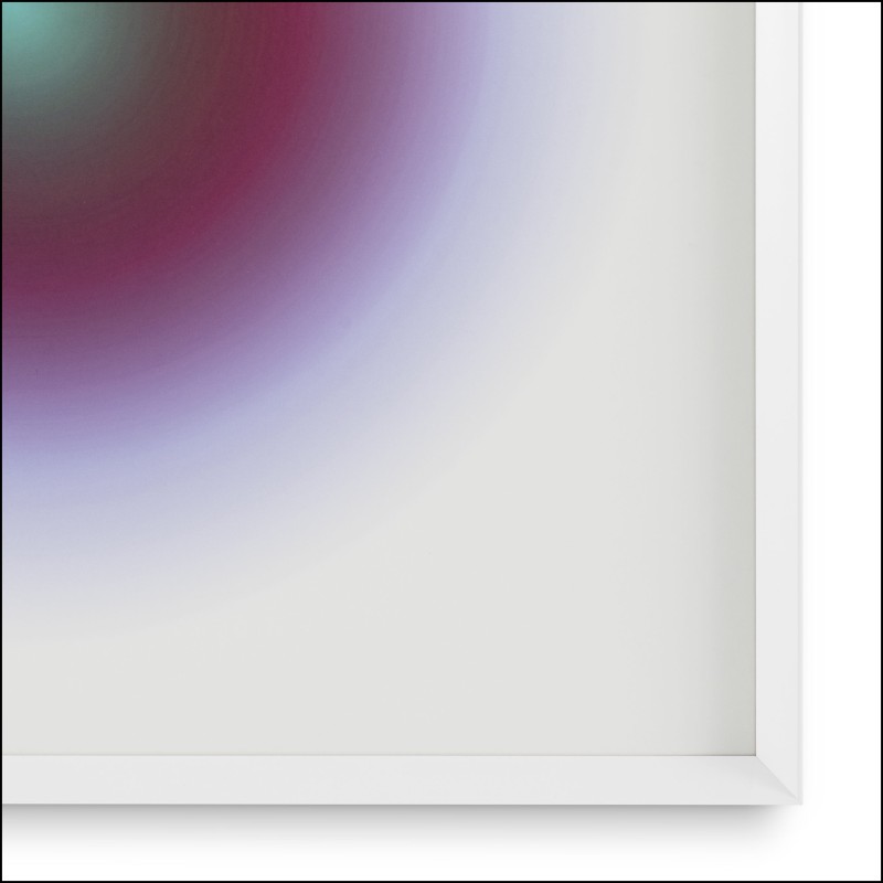 The contrast between the white frame and the painting itself creates a unique
