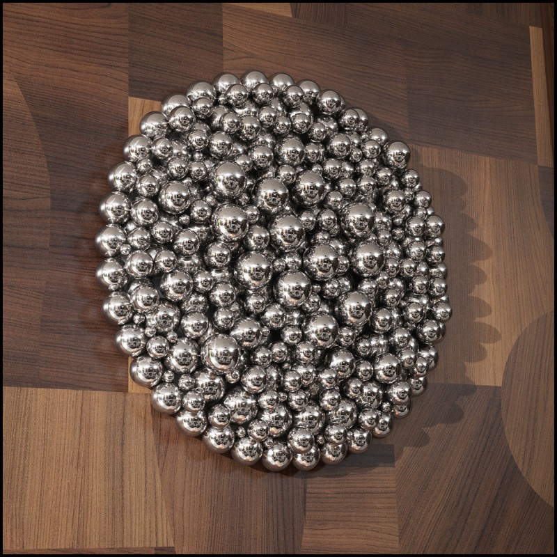 The polished steel finish of the Silvershore Wall Object offers a bright and