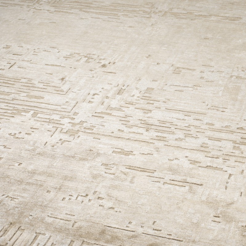 The texture of this cotton, wool, and viscose carpet is soft and luxurious, offering