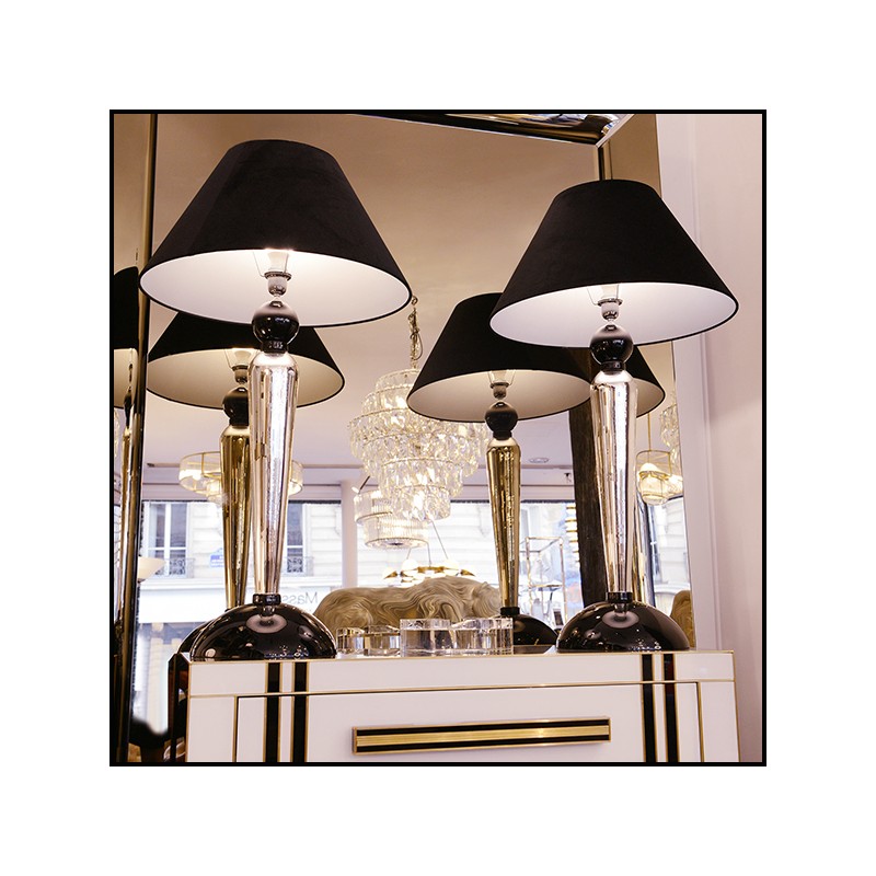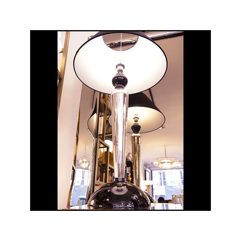 Set of 2 Table Lamp PC- Murano Glass High, with base in murano glass in silver glass finish and in black glass finish.