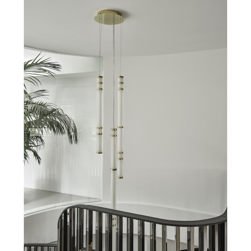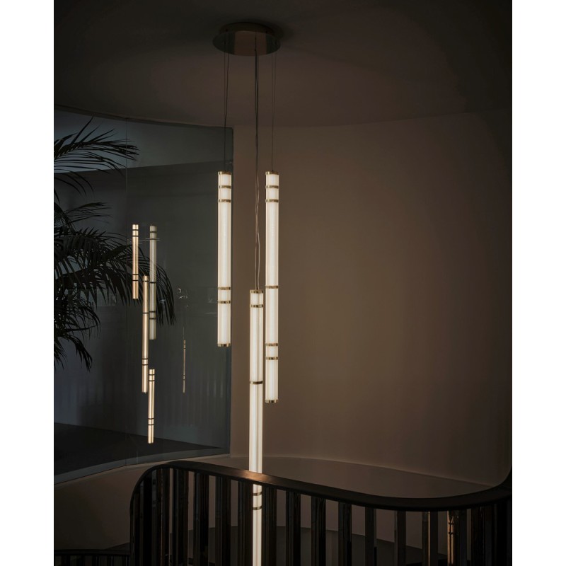 The Lighting Atrium by Rugiano is designed to elegantly illuminate your interior, notably your entrance hall or living room, with its sandblasted glass tube and brass vernished gold and striped, inspiring a timeless style.