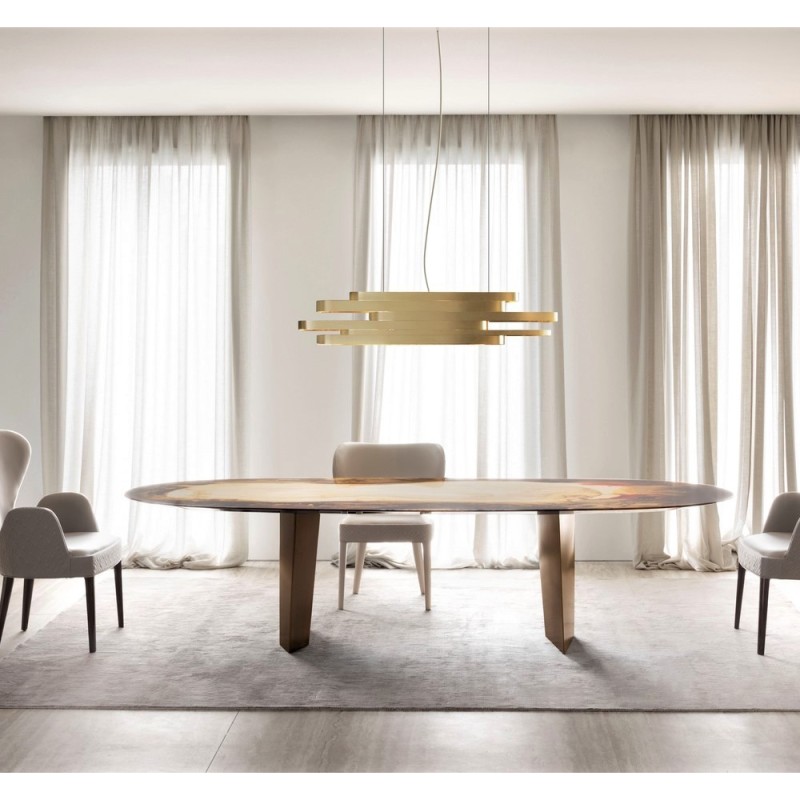 The combination of premium materials and warm sensations creates a unique atmosphere, while the brushed brass finish adds a touch of sophistication. The generous dimensions, 150 × 10 × H29,5, make it a central element in any room.