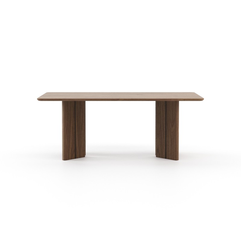 The Ponza Dining Table by Laskasas is designed to elegantly decorate your dining room, with its walnut matte look and varied dimensions to fit different spaces.