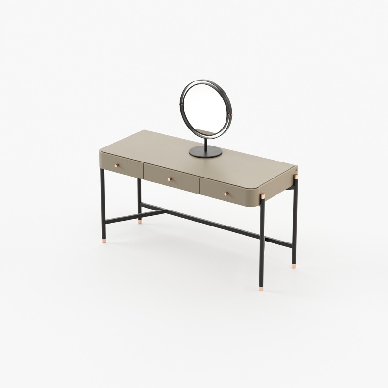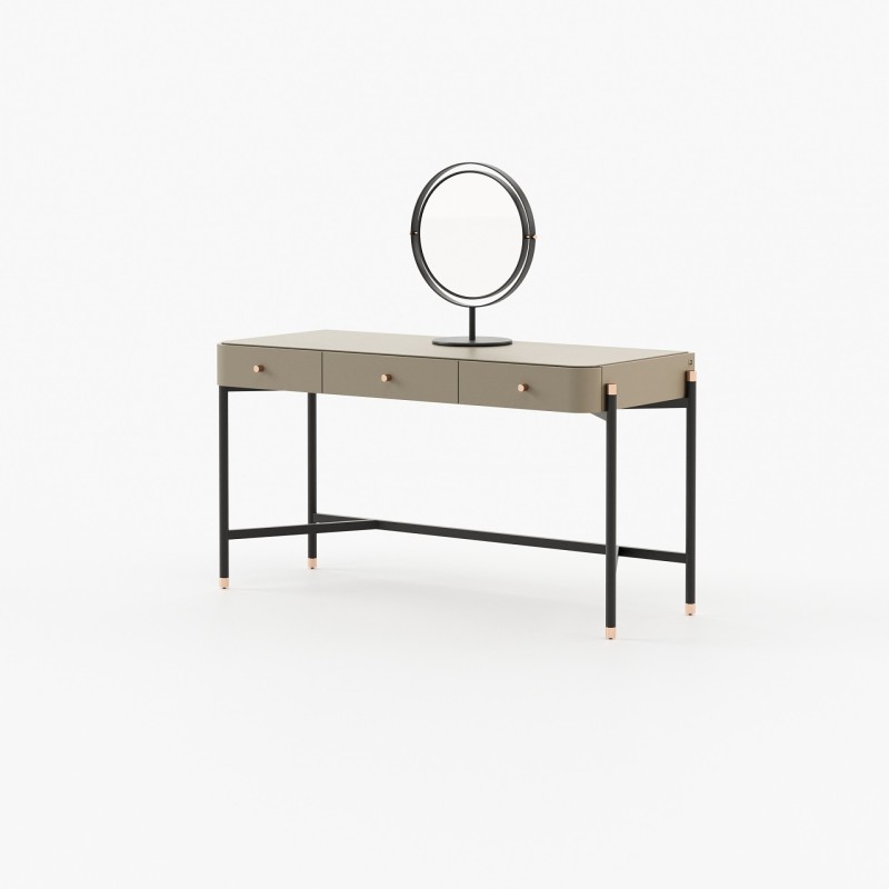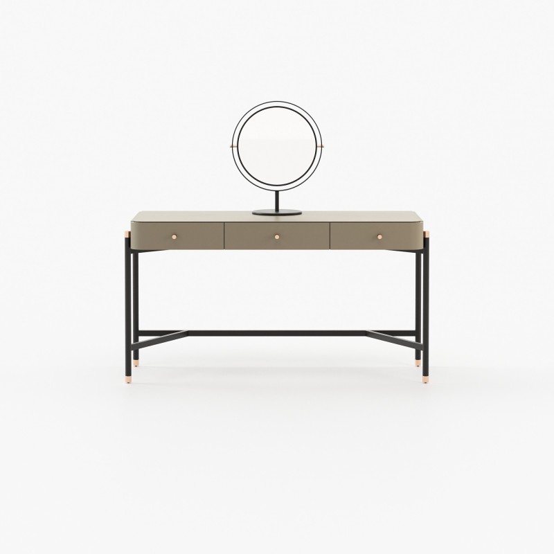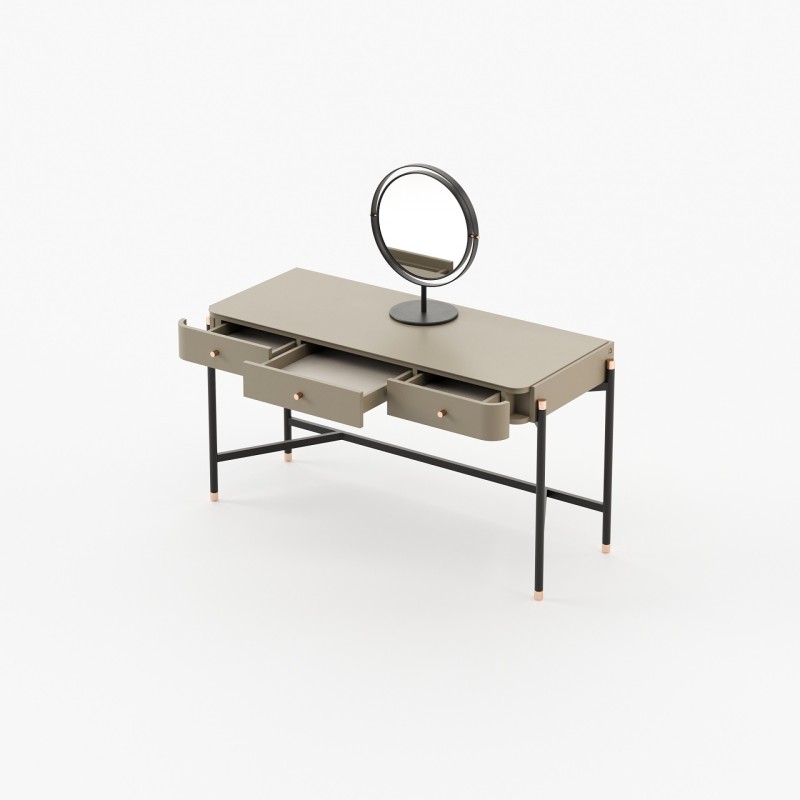The Rosie Dressing Table stands out with its walnut wood and metal accents, providing a delightful contrast of textures. The serene atmosphere it creates invites relaxation and well-being, while its spacious dimensions ensure ample storage.