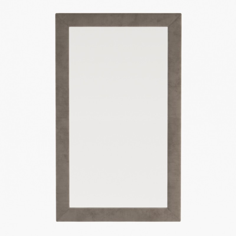 The metallic finish of the mirror contrasts with the soft sensation brought by the fabric, creating a unique visual balance that can be appreciated in an intimate and calm atmosphere. The generous dimensions make this mirror a focal point in any room.