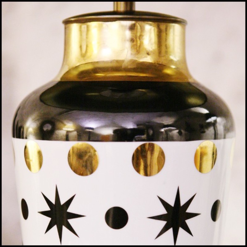 Table Lamp in hand-crafted porcelain with gilded rings PC-Black Stars