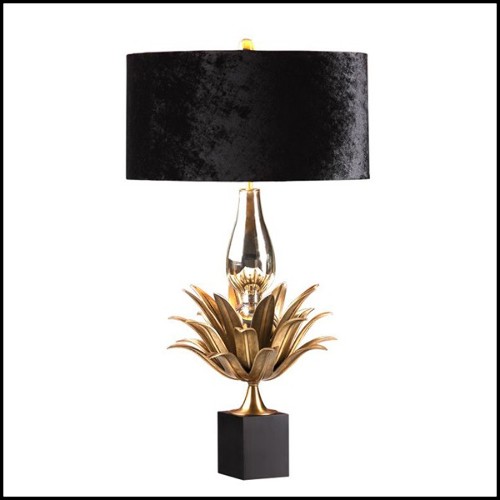 Table lamp with solid brass leaves in bronze finish and black velvet lampshade and leaves 165-Franklin