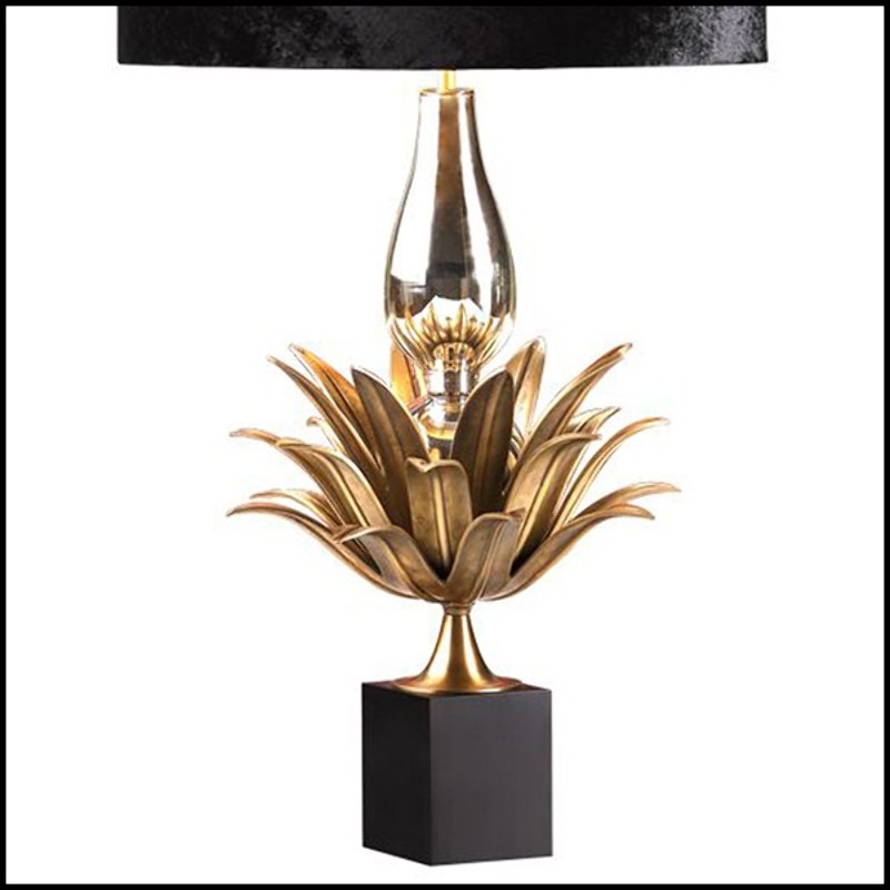 Table lamp with solid brass leaves in bronze finish and black velvet lampshade and leaves 165-Franklin