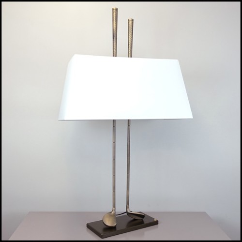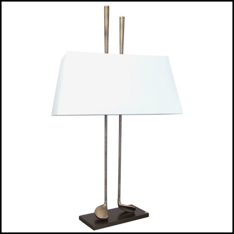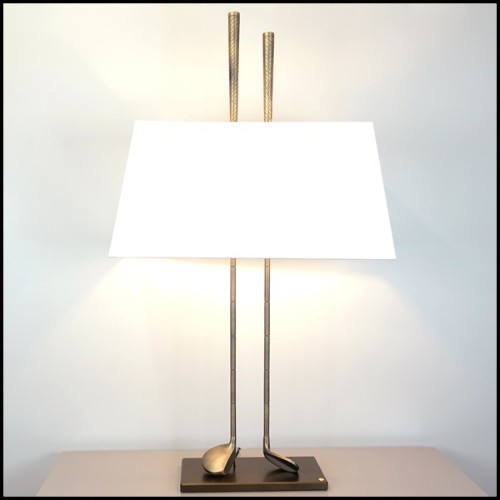 Table lamp Golf Club, with 2 clubs in brass in vintage brass finish.
