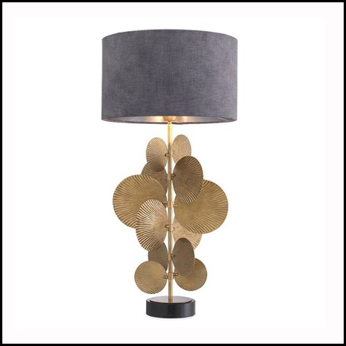Table Lamp Mito with structure in vintage brass finish and granit base.