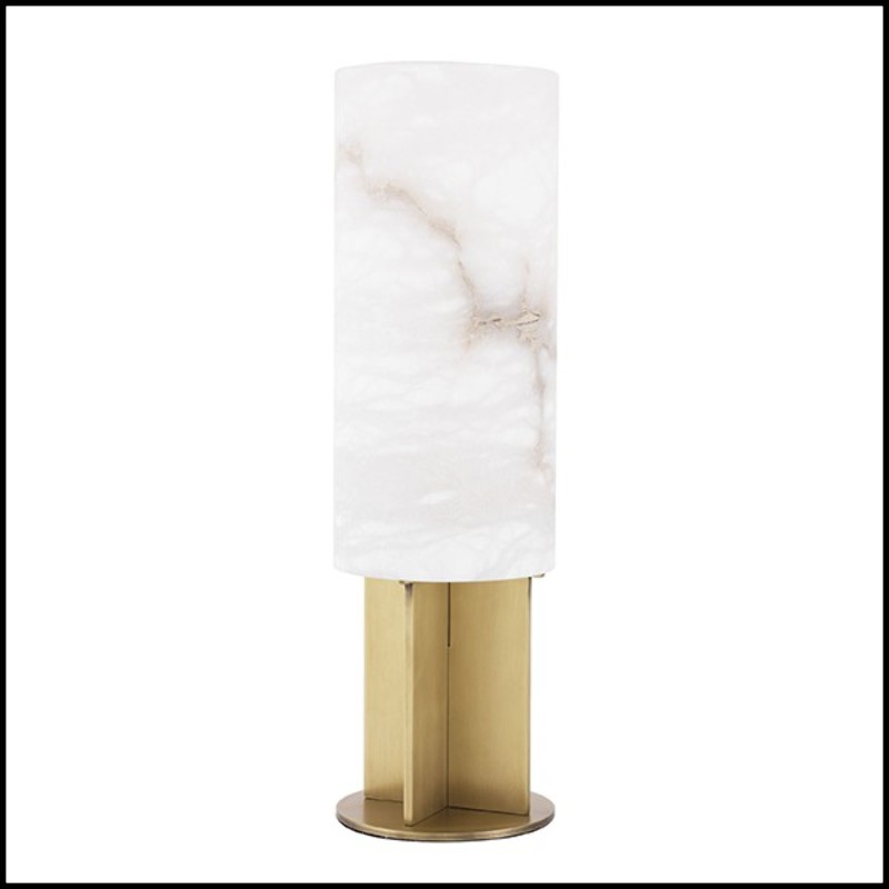 Its cylindrical alabaster lampshade diffuses a soft and warm light, ideal