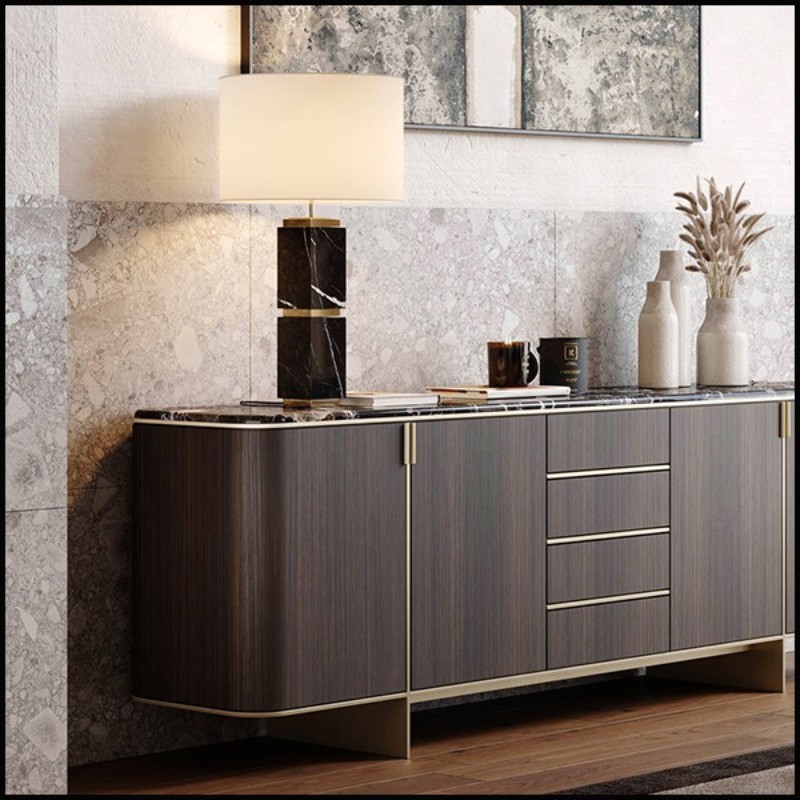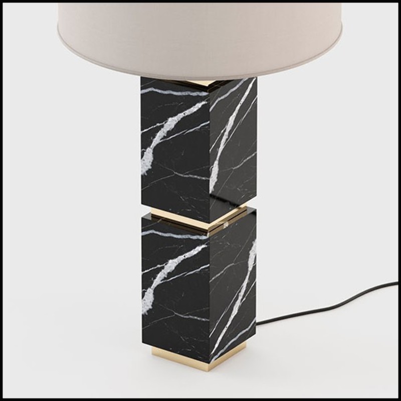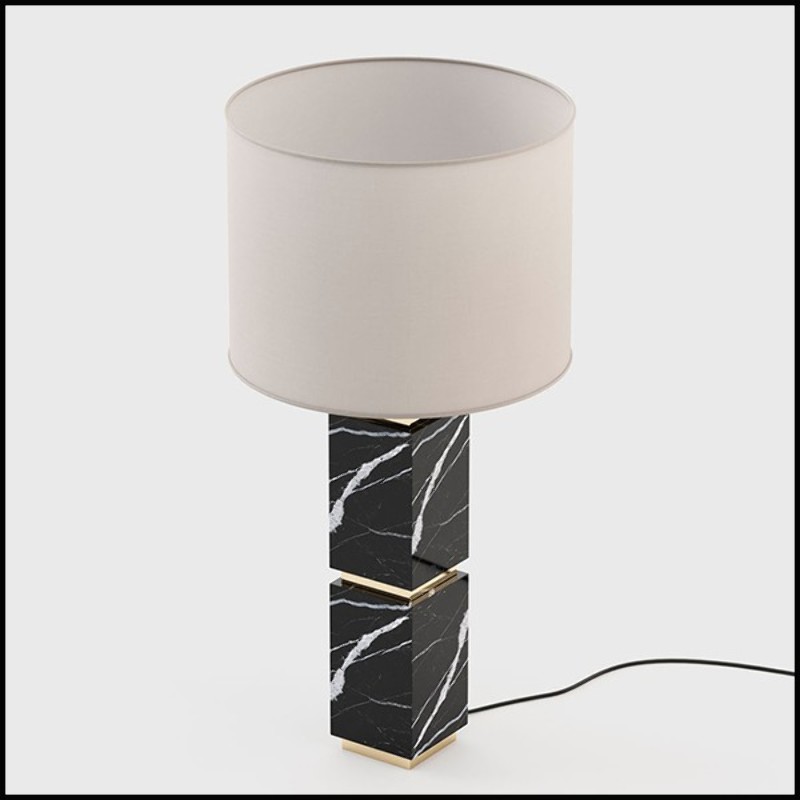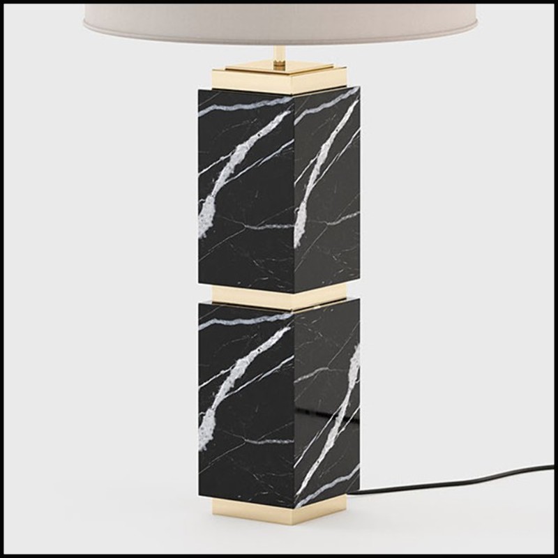 Table lamp with a solid black Nero Marquina marble handmade base