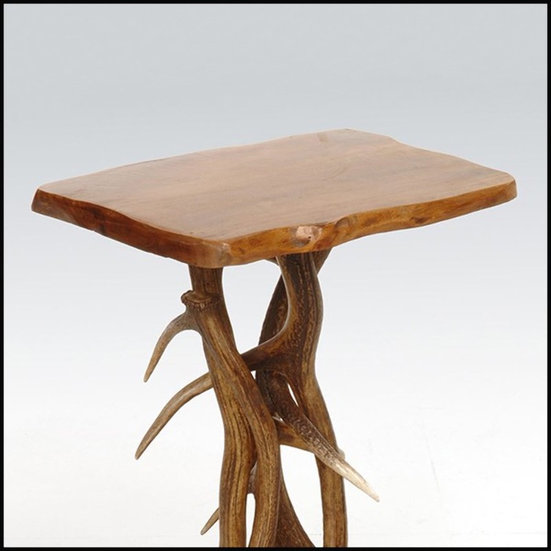 Side Table Antlers made with 3 real antlers and solid wood top in varnished finish.