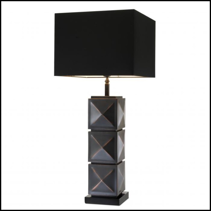 and a multi-faceted stainless steel structure in antique bronze finish.