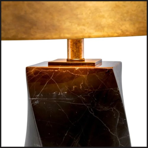 and gray marble, enhanced by a vintage brass metal lampshade,