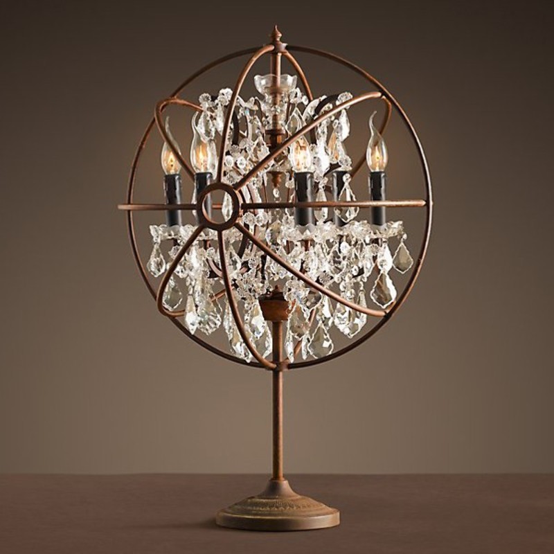 Table lamp in crystal with iron tube structure "Antique Rust" finish Arteinmotion-Cristal Antique
