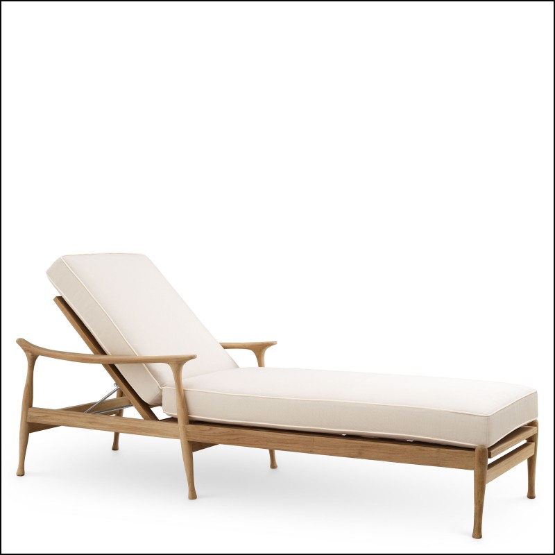 The Outdoor Daybed Manzo by eichholtz is designed to elegantly enhance your outdoor space, suitable for use on a terrace or in a garden. Crafted from natural teak, it features a flores white broken color, lending a touch of sophistication to any setting. The piece's metallic finish beautifully complements a contemporary style to create an intimate and welcoming atmosphere. Furthermore, the use of natural teak brings a sense of warmth and comfort, essential for a relaxation area. Discover our collection of eichholtz furniture and explore our selection of loungers at Pacific Compagnie.