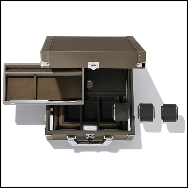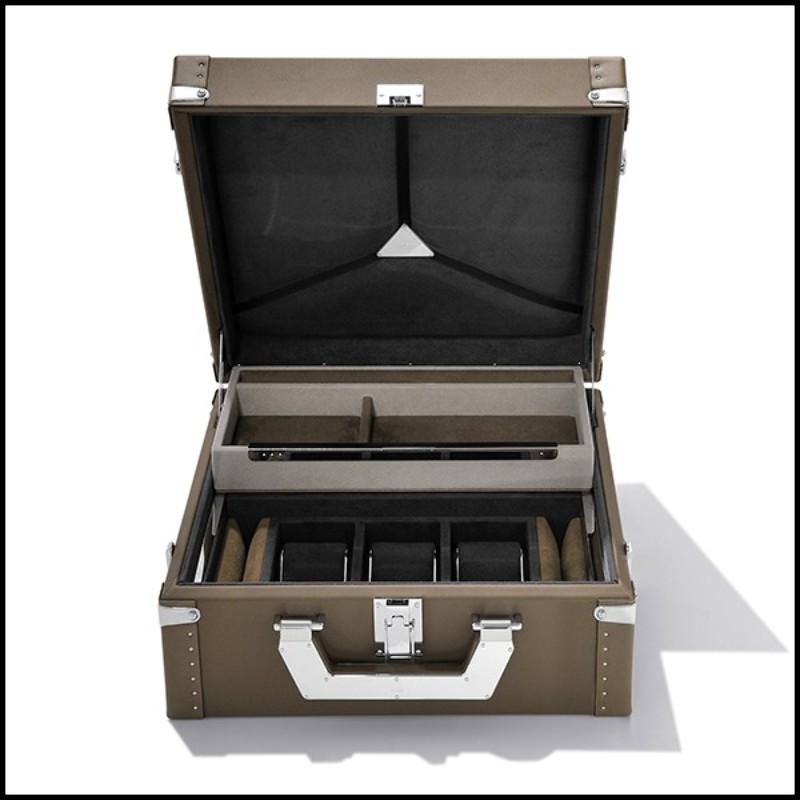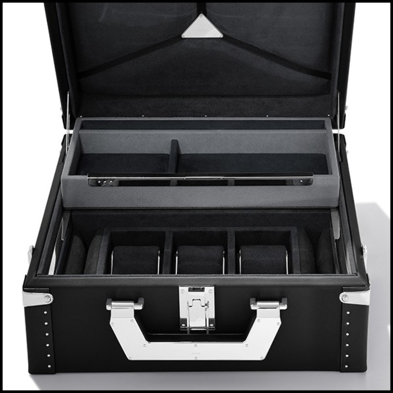 Suitcase with black cowhide leather sheathing 186-Luxury Watch Black or Brown