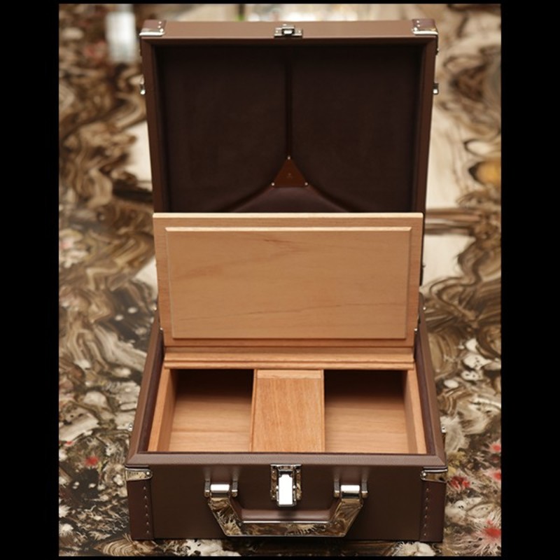 With a solid Spanish cedar wood humidor for 50 to 75 cigars.