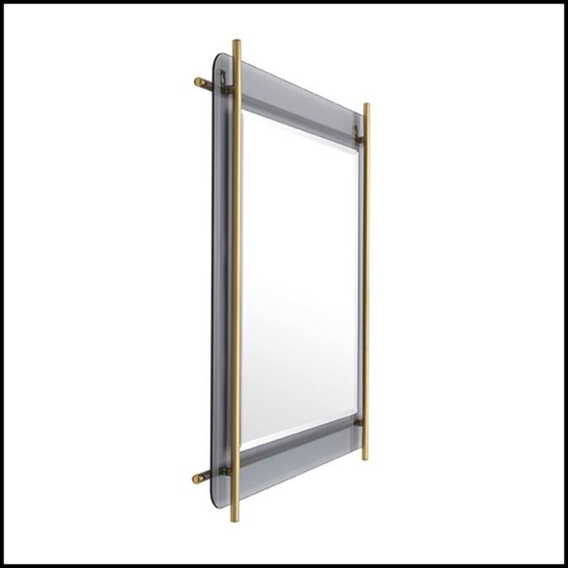 Mirror Quinn with structure in brushed brass finish.