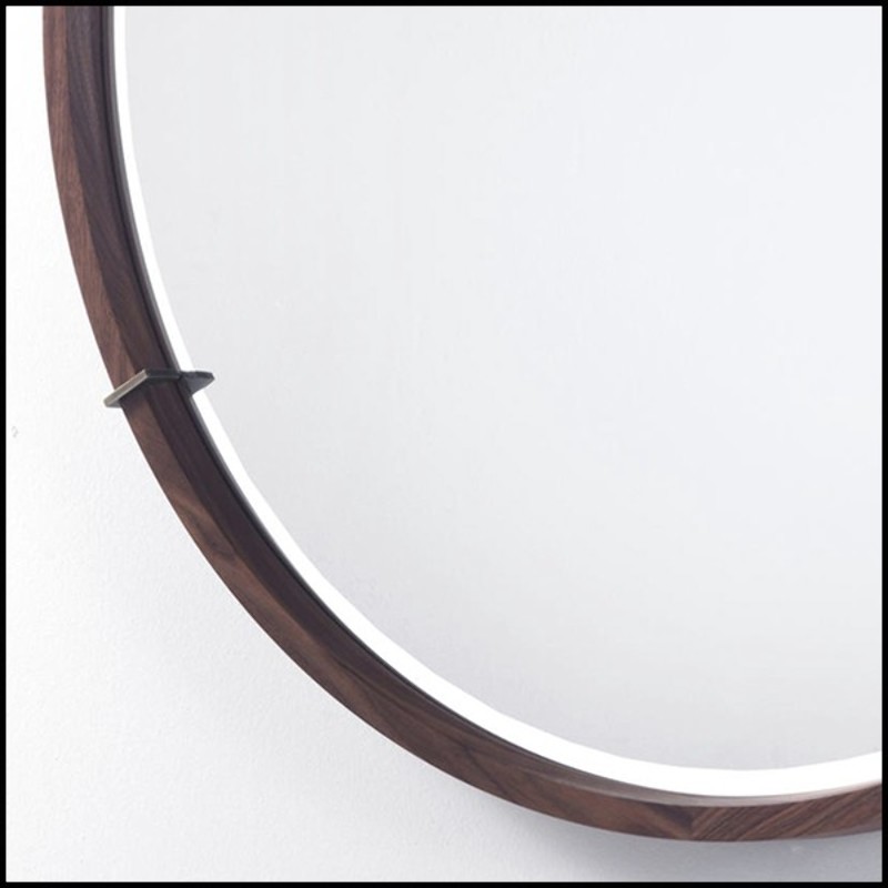 Mirror Mark Round features a rounded solid walnut wood frame,