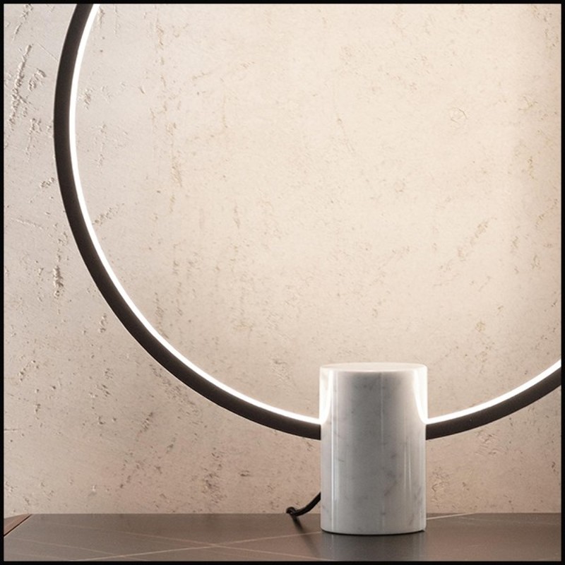 Table Lamp Ring XL on a cylindrical base in Carrara marble,