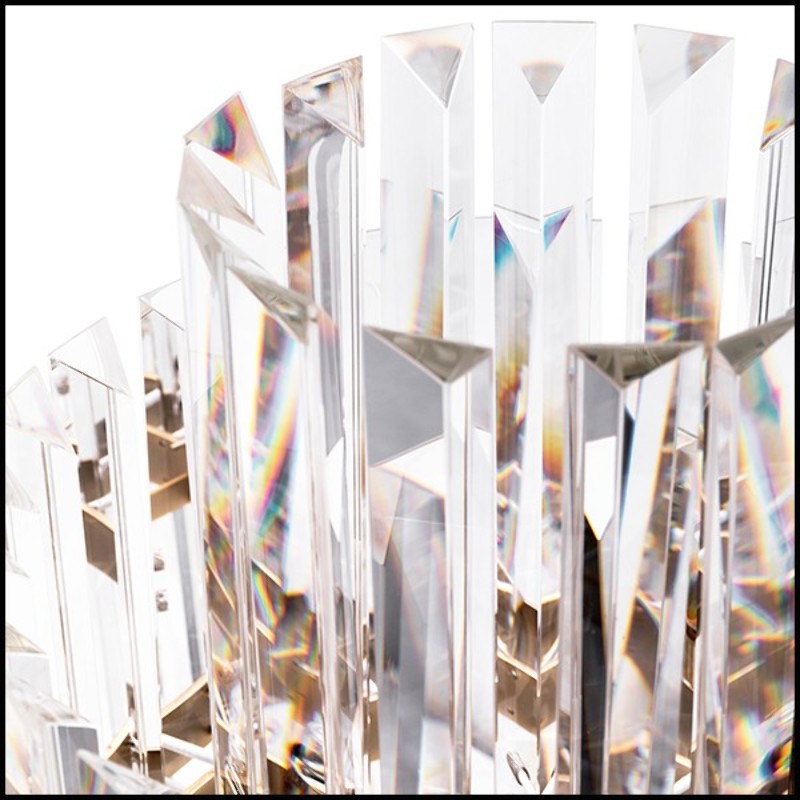 Shades are carved crystal glass slats.