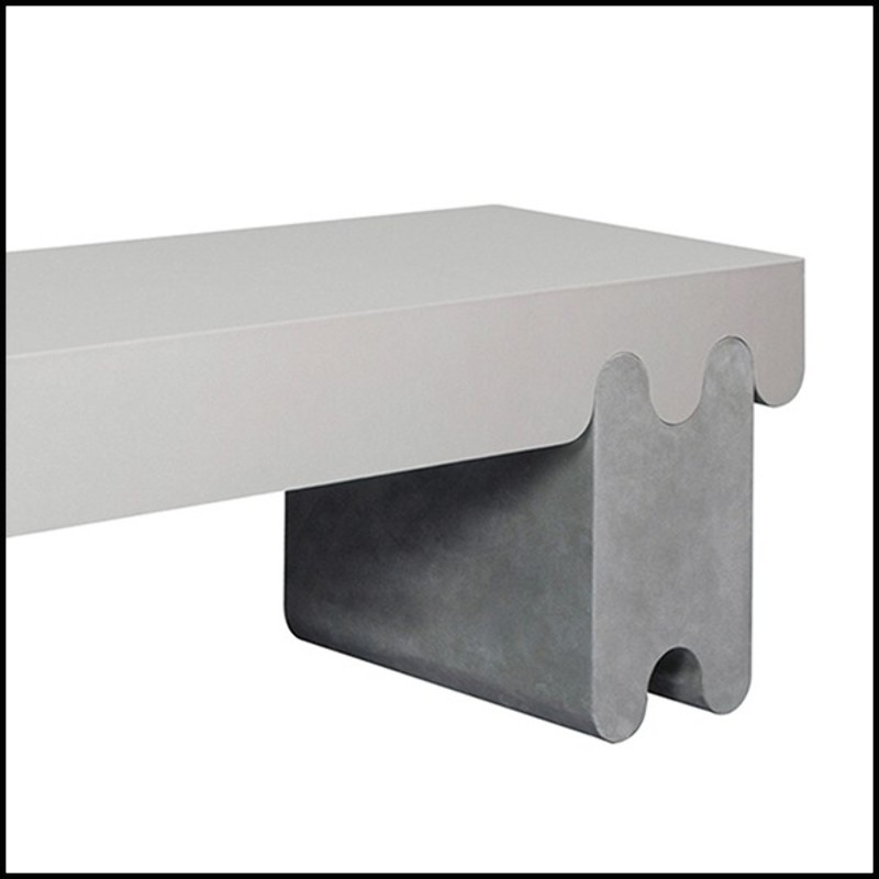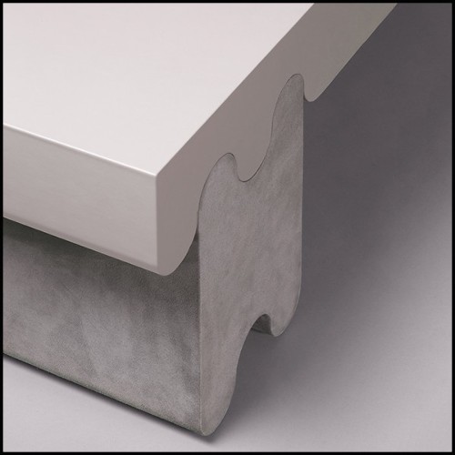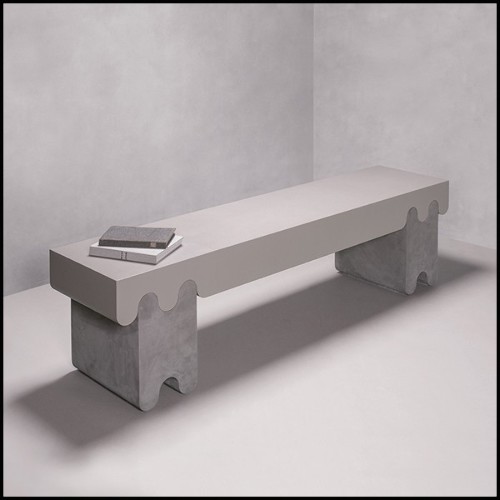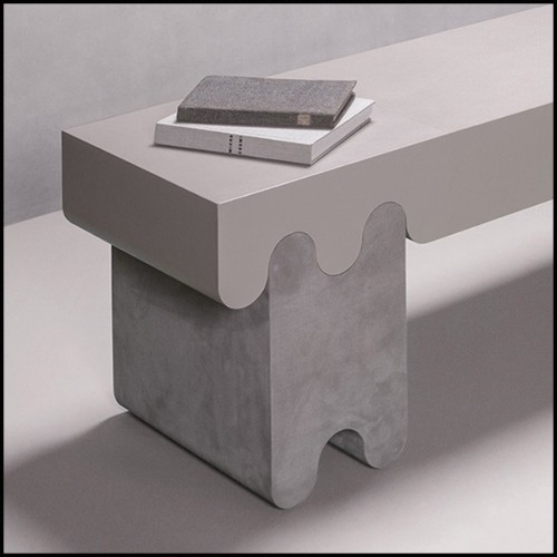 Bench with a solid wood structure, feet covered with suede grey genuine leather.
