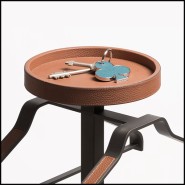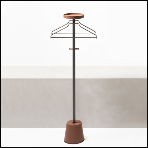 Dennis Vallet features a metal structure in bronze finish, covered with brown genuine leather, hand-crafted.