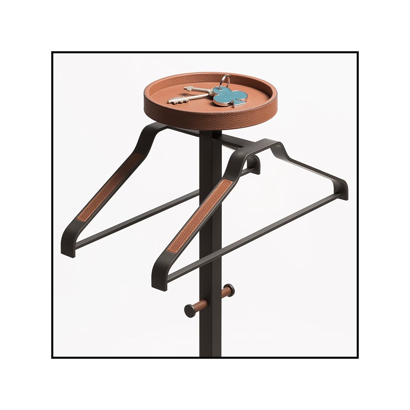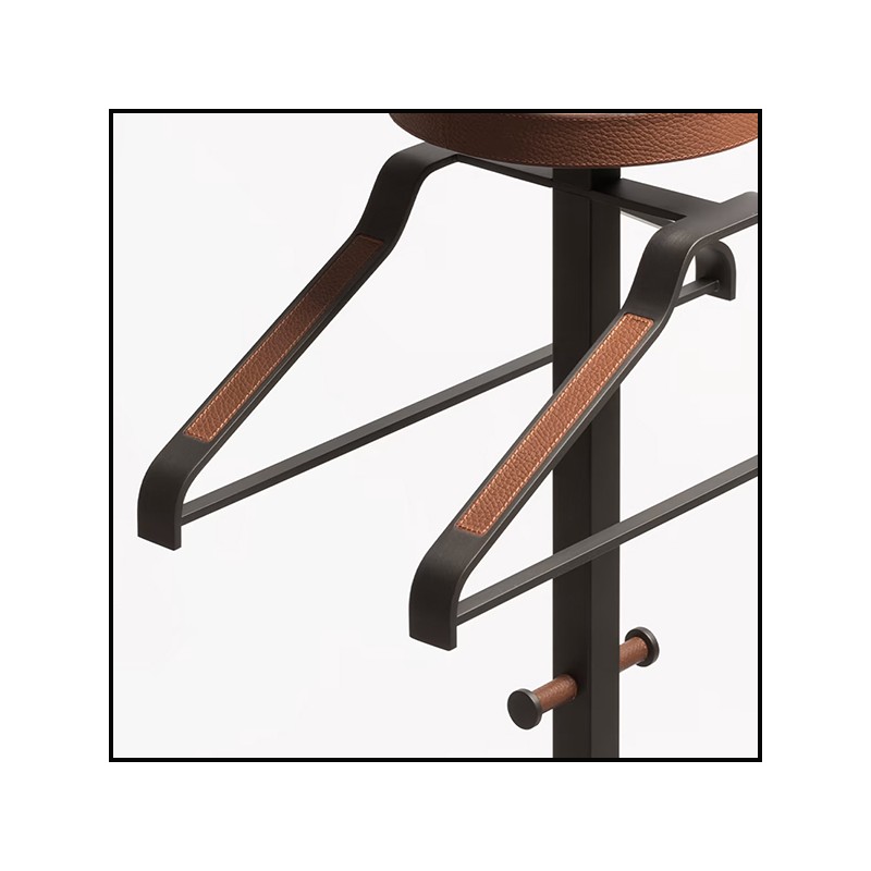 Dennis Vallet features a metal structure in bronze finish, covered with brown genuine leather, hand-crafted.