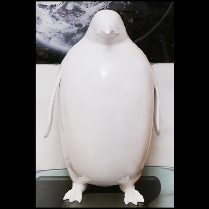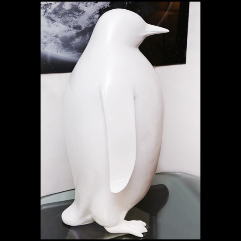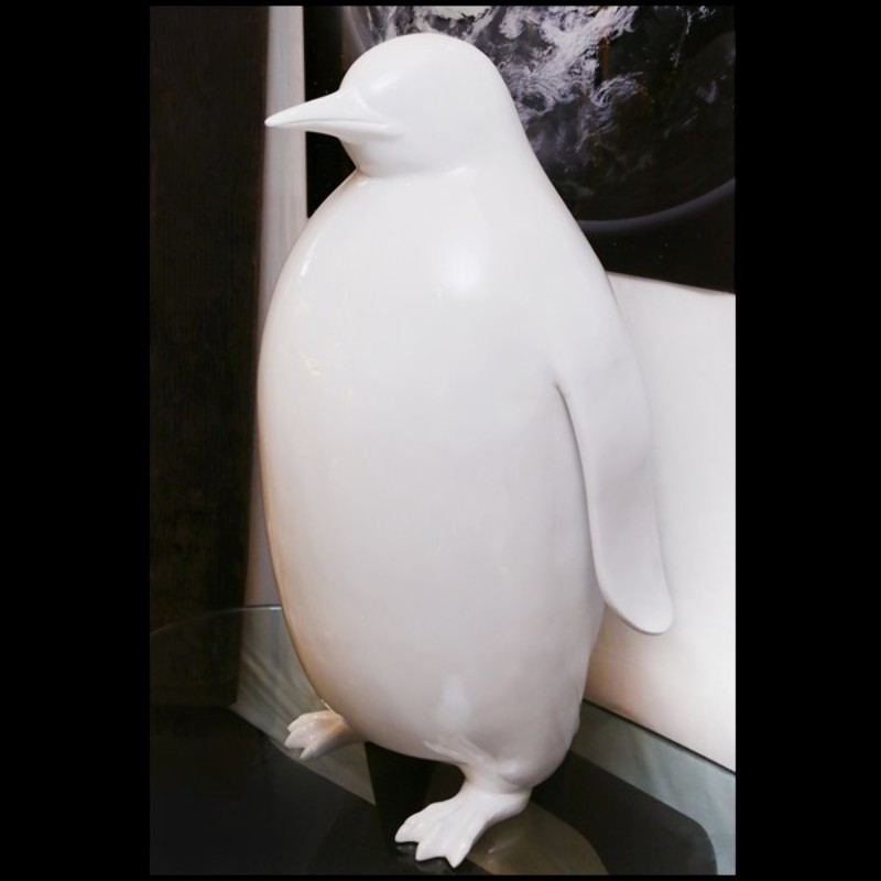 Sculpture of Emperor Set of 2 penguin in varnished white lacquered resin PC-Penguin Set