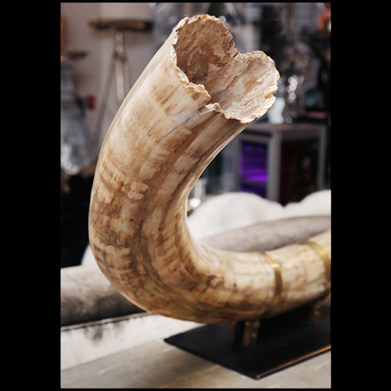 with brass rings to hold the tusks. Exceptional and unique piece.