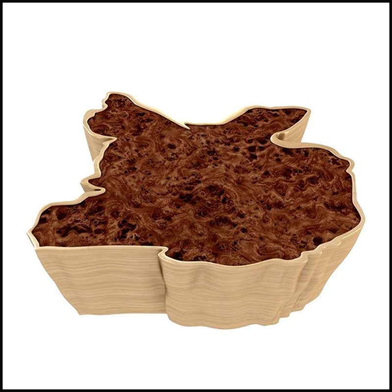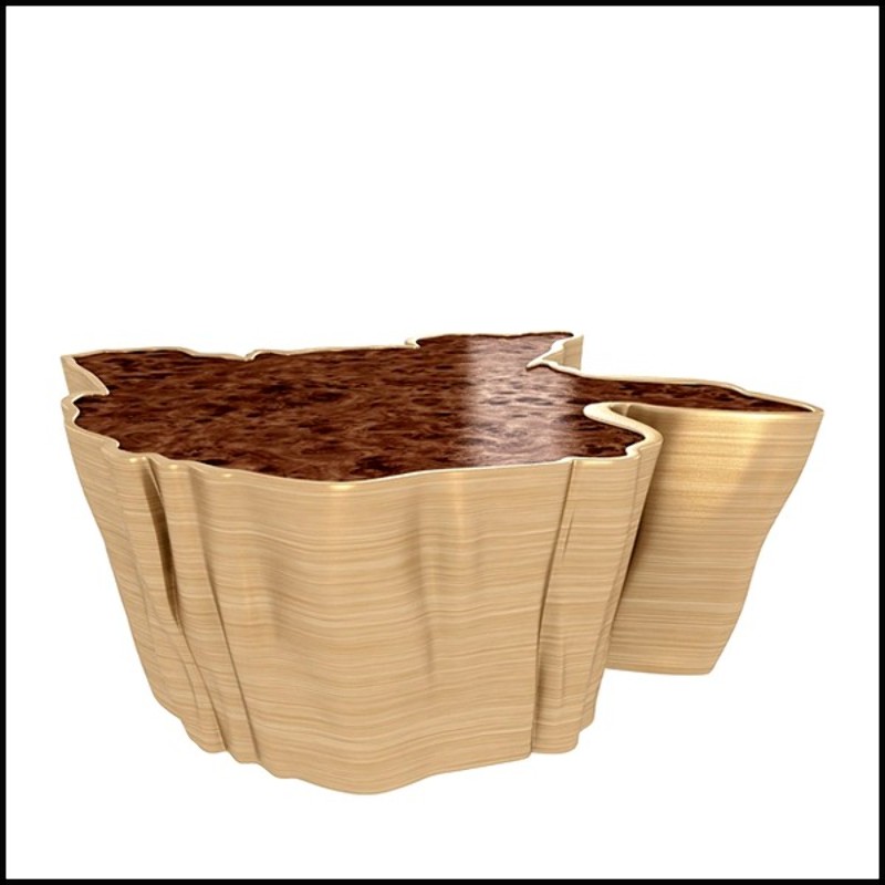 A true statement piece, this coffee table stands out with its unique design and noble materials, making it a central element in a high-end living room. It blends harmoniously into both contemporary and classic interiors, bringing a warm and prestigious touch.